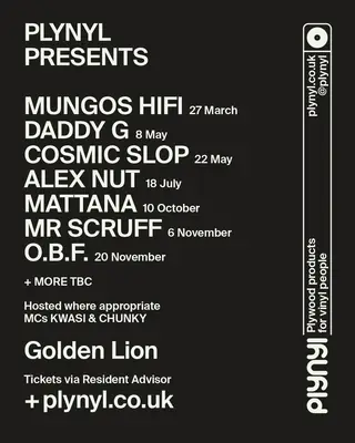 Plynyl presents - Mungo's Hi Fi and MC Kwasi - Jazz2Jungle on March 27, 2026 at The Golden Lion, Paris features Mungo's Hi Fi performing bass DJ sets.