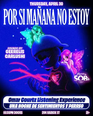 POR SI MAÑANA NO ESTOY - Omar Courtz Listening Experience takes place at SOBs in New York City, United States on April 30, 2026. Reggaeton sounds all night.