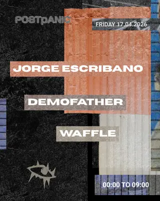 Post Panic on April 17, 2026 at TBA, Barcelona features Jorge Escribano, Demofather and Waffle performing DJ sets.