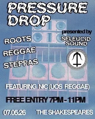 Pressure Drop #6 (Seleucid Sound) on May 7, 2026 at Shakespeares, Sheffield features electronic music performances dub DJ sets.