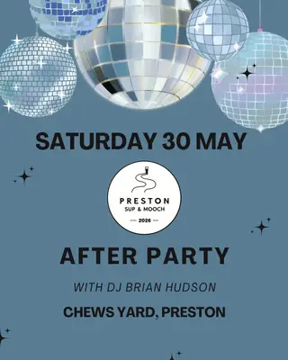Preston Sup & Mooch Afterparty takes place at Chew's Yard, Preston in North, United Kingdom on May 30, 2026. Featuring Brian Hudson. House and Disco sounds all night.