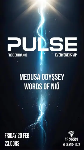 A new edition of PULSE lands at Esbirra Ibiza, dedicated to melodic tension and driving club energy. Medusa Odyssey Word of Niō Expect a journey through house, melodic and techno territories, built around atmosphere, progression and dancefloor momentum. From 23:00 Esbirra Ibiza – Es Canar Built for movement.