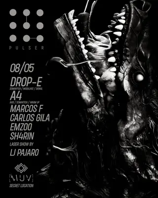 Pulser 13 Drop -E & A4 on May 8, 2026 at Muv, Lisbon features electronic music performances techno DJ sets.