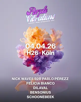Purple Vibrations with Nick Waves B2B Pablo Pérezz, Felicia Bianco, Dilaval on April 4, 2026 at H26, Cologne features Bensonius performing progressive house DJ sets.
