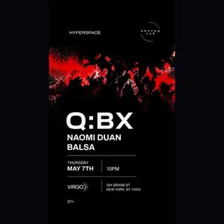 Q:BX at HYPERSPACE 05/07 on May 7, 2026 at Virgo, New York features electronic music performances techno DJ sets.