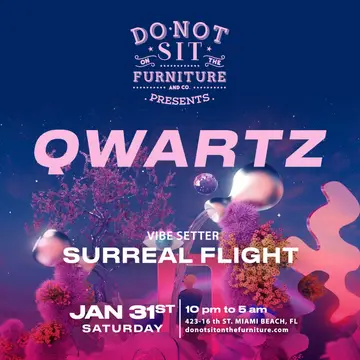 Saturday, January 31st Do Not Sit On The Furniture presents Qwartz Vibe Setter: Kate Ozz We are now open from 10 pm to 5 am. Come enjoy our magical venue... Please note, table reservations are highly recommended.. Table Reservations: Please call 5105515067 or visit: donotsitonthefurniture.com ALL SALES FINAL & NO REFUNDS Dress Code: Dress to Impress / Casual Upscale