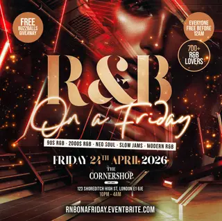 R&B On A Friday - Shoreditch RnB Party on April 24, 2026 at The Cornershop Bar, London features electronic music performances DJ sets.