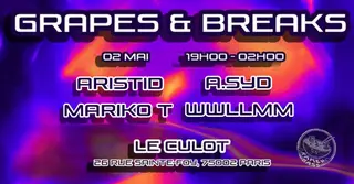 RAMEN BASS presents GRAPES & BREAKS takes place at TBA - Culot! (26 Rue Sainte-Foy, 75002 Paris, France) in Paris, France on May 2, 2026. Featuring Wwllmm. Hip-Hop and Club sounds all night.