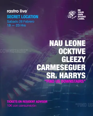 Rastro Live & Be Your Own Studio Label - Nau Leone, OCKTIVE, Gleezy, CARMESEGUER, Sr. Harrys takes place at Rastro Live Studio in Miami, United States on Saturday, February 28, 2026. Featuring Nau Leone, OCKTIVE, Gleezy, CARMESEGUER and 1 more. Techno, Electronica.