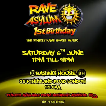Rave Asylum 1st Birthday - 'The Finest Rave House in London' takes place at Basing House in London, United Kingdom on Saturday, June 6, 2026. House, Hardcore.