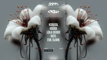Set at Mia Mao, RAW: Kobosil, ROÜGE, Lola Cerise, BOTL, EVIL CLARK 2026 brings together artists and fans in Paris on Saturday, April 18, 2026, featuring Kobosil, ROÜGE, Lola Cerise and 1 more artists. This event brings together artists and fans who share a passion for dance music culture and Techno sounds.