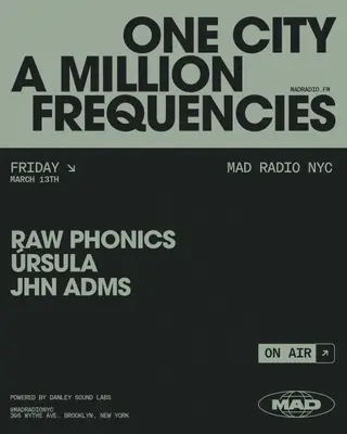 Raw Phonics / Úrsula / Jhn Adms takes place at MAD Radio NYC in New York, United States on March 13, 2026. Featuring Raw Phonics. House and Deep House sounds all night.