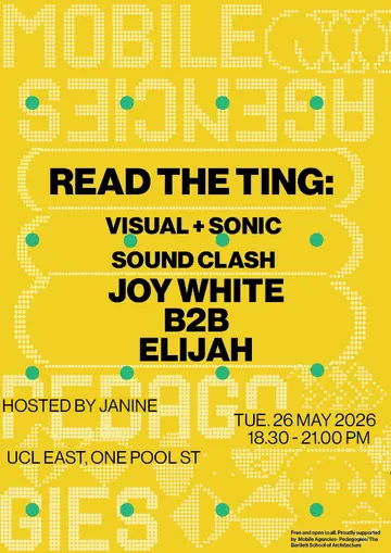 Set at UCL East - 1 Pool Street, Read the Ting: Visual & Sonic Sound Clash 2026 brings together artists and fans in London on Tuesday, May 26, 2026. This event brings together artists and fans who share a passion for dance music culture and Hip-Hop, Grime sounds.