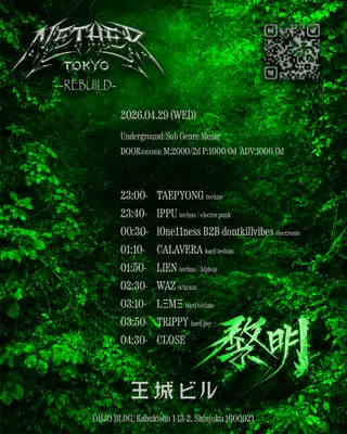 REBUILD (HARD TECHNO, ETC) by NETHER TOKYO and LEIMEI takes place at Ohjo Bldg in Tokyo, Japan on April 29, 2026. Featuring LienNaigel, Calavera. Breakbeat and Techno sounds all night.
