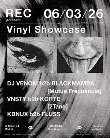 REC: VINYL SHOW CASE: DJ VENOM, BLACKMAMBA, VNSTY, KORTE, KBNUX, Fluss takes place at Hangar48 Club in Miami, United States on Friday, March 6, 2026. Featuring VNSTY, KBNUX, Fluss. Techno, Tech House.