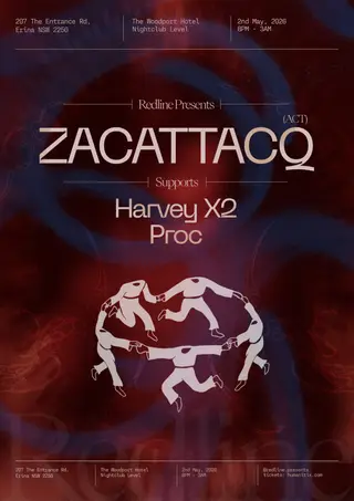 Set at The Woodport Inn, Redline with zacattacq 2026 brings together artists and fans in Sydney on Saturday, May 2, 2026, featuring zacattacq and proc (2). This event brings together artists and fans who share a passion for dance music culture and Progressive House, Garage sounds. The Woodport Inn has hosted Progressive House events in Sydney as part of the area's regular club programming. It draws 2 artists and fans seeking authentic Progressive House music in Sydney. Designed for a discerning audience, The Woodport Inn's programming draws fans of Progressive House music across Sydney. The production is designed to showcase the depth and diversity of contemporary electronic music.