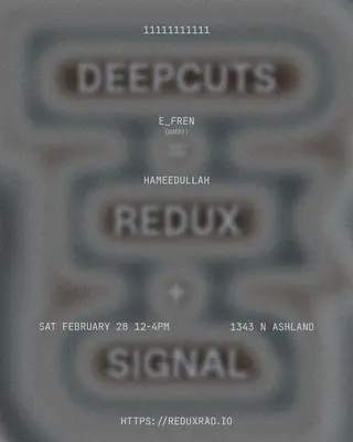 Redux: DEEPCUTS takes place at Signal Records Wicker Park in Chicago, United States on February 28, 2026. Featuring 11111111111, Hameedullah.