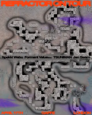 Refractor On Tour: London takes place at Gaffe in London, United Kingdom on April 17, 2026. Featuring Spekki Webu, Formant Value, TSUNIMAN, Jan Swam. Trance and Techno sounds all night.