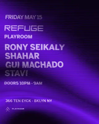 Refuge Saturday: Rony Seikaly, Shahar, Gui Machado & Stavi on May 15, 2026 at Refuge, New York features Rony Seikaly, Shahar and Gui Machado performing DJ sets.