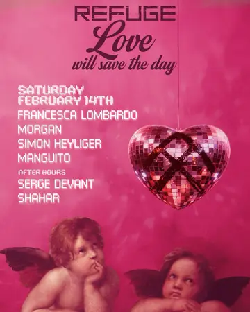 Refuge Saturdays with Francesca Lombardo, Serge Devant, Morgan, Shahar takes place at Refuge in New York, United States on Saturday, February 14, 2026. Featuring Francesca Lombardo, Serge Devant, Morgan, Shahar and 2 more.