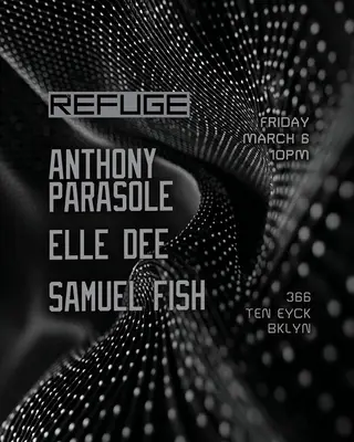 Refuge Special Showcase with Anthony Parasole, Elle Dee and Samuel Fish takes place at Refuge in New York, United States on March 6, 2026. Featuring Anthony Parasole, Elle Dee, Samuel Fish. Techno sounds all night.