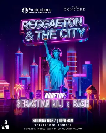 Reggaeton & the City Rooftop Party Saturday – March 7th 2026 takes place at the renowned Concord NYC in New York City, Unknown on Saturday, March 7, 2026, featuring Bash. This event brings together artists and fans who share a passion for dance music culture and Reggaeton, Latin Bass sounds.