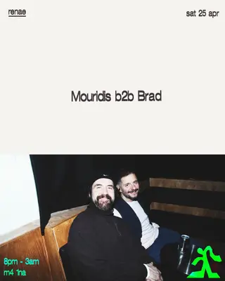 renae: Mouridis B2B Brad on April 25, 2026 at renae, Manchester features electronic music performances house DJ sets.