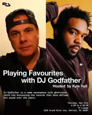 Resident Advisor Presents: Playing Favourites with DJ Godfather at TV Lounge in Detroit, United States on May 21, 2026. Featuring DJ Godfather, Kyle Hall. Ghetto Tech sounds all night.