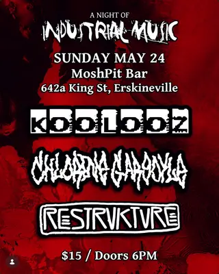 Restrukture Presents: A Night of Industrial Music takes place at TBA in Sydney, Australia on May 24, 2026. Industrial and Noise sounds all night.