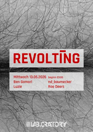 Revolting takes place at Berghain | Panorama Bar | Säule in Berlin, Germany on May 13, 2026. Featuring Ben Gomori, Luzie, nd_baumecker, Roe Deers.