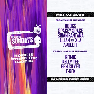 Revolver Sundays on May 3, 2026 at Revolver Upstairs, Melbourne features Boogs, Spacey Space, Lilian, KELLY TEE and Ben Silver (AUS) performing techno DJ sets.