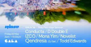 Conducta and D Double E headline Rinse FM GALA '26 Patio Takeover at Peckham Rye Park, London, United Kingdom on May 22, 2026. Featuring Conducta, D Double E, Izco, Mona Yim and 3 more. A blend of Garage and Grime.