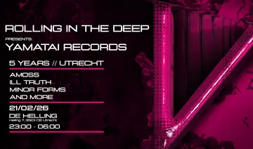 Rolling In The Deep x Yamatai Records takes place at De Helling in Utrecht, Netherlands on Saturday, February 21, 2026. Drum & Bass.