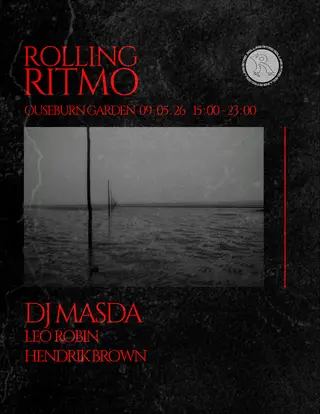 Rolling Ritmo Day Party wit DJ Masda, Leo Robin, Hendrik Brown takes place at Ouseburn Garden in Newcastle, United Kingdom on May 9, 2026. Featuring DJ Masda, Hendrik Brown. Techno and Electro sounds all night.