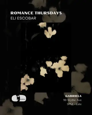 ROMANCE w Eli Escobar takes place at Gabriela in New York City, United States on April 30, 2026. Featuring Eli Escobar. Electro and Pop sounds all night.