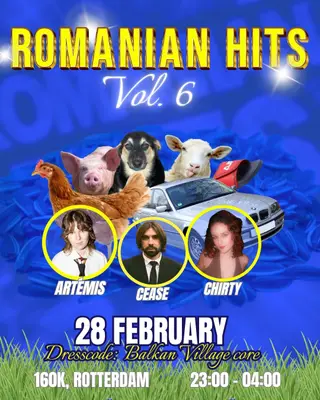 Romanian Hits Vol.6 takes place at 160k in Rotterdam, Netherlands on February 28, 2026. Featuring Chirty.