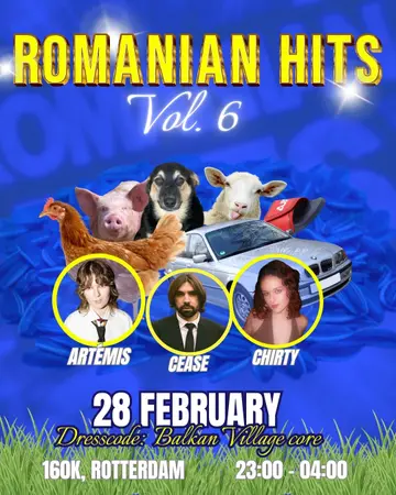 Romanian Hits Vol.6 takes place at 160k in Rotterdam, Netherlands on Saturday, February 28, 2026. Featuring Chirty.