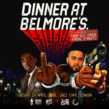 Rome Streetz + Your Old Droog takes place at The Jazz Cafe in London, United Kingdom on Tuesday, April 14, 2026. Hip-Hop.