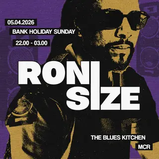 Roni Size takes place at The Blues Kitchen Manchester in Manchester, United Kingdom on April 5, 2026. Featuring Roni Size. Drum & Bass and Jungle sounds all night.