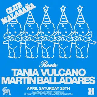 Roots feat. Tania Vulcano + Martín Balladares on April 25, 2026 at Club Malasaña, Madrid features Roots (ES), Tania Vulcano and Martin Balladares performing house DJ sets.