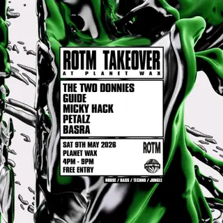 ROTM TAKEOVER takes place at Planet Wax in London, United Kingdom on May 9, 2026. Featuring Basra. Bass and Jungle sounds all night.