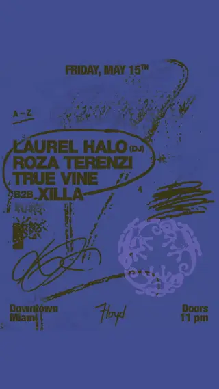 Roza Terenzi + Laurel Halo (DJ) takes place at Floyd in Miami, United States on May 15, 2026. Featuring Roza Terenzi, Laurel Halo, True Vine, Xilla. House and Experimental sounds all night.