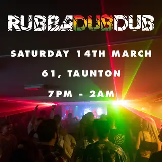 RUBBADUBDUB...The final Chapter at 61 Taunton (Perfect 5th) takes place at 61 Bar & Venue in Bristol, United Kingdom on March 14, 2026. Featuring HERATIKS. Drum & Bass and Dubstep sounds all night.