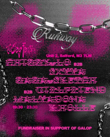 RUNWAY 4.5 - Fundraiser for GALOP takes place at The Bag Factory in Paris, France on Friday, February 6, 2026. Featuring Girlfriend. Techno, Ghetto Tech.