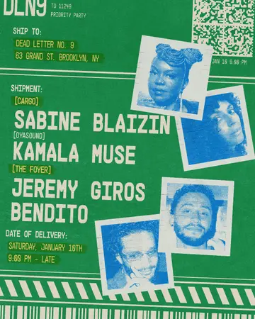 Sabine Blaizin, Kamala Muse, Jeremy Giros, Bendito takes place at Cargo @ Dead Letter No. 9 in New York, United States on Saturday, January 10, 2026. Featuring DJ Kamala, Bendito, Jeremy Giros.