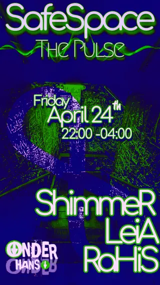 SafeSpace - The Pulse on April 24, 2026 at Onder Hans, Amsterdam features Sceptical C, SHIMMER and LEIA (1) performing techno DJ sets.
