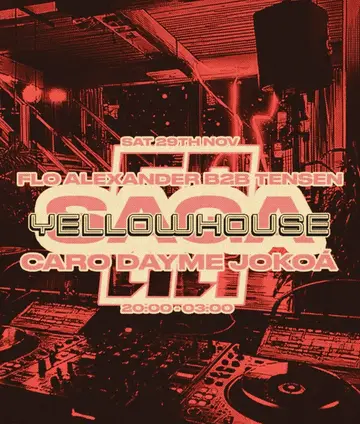 Yellow House in Amsterdam, Netherlands presents SAGA 2025, a curated electronic music experience on Saturday, November 29, 2025, featuring JOKOÁ, Dayme, Tensen and 0 more artists. This event brings together artists and fans who share a passion for dance music culture and electronic sounds.