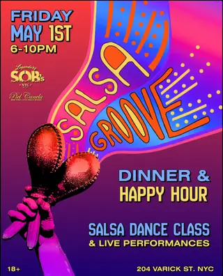 Salsa Groove: Dance Class & Happy Hour takes place at SOBs in New York City, United States on May 1, 2026.