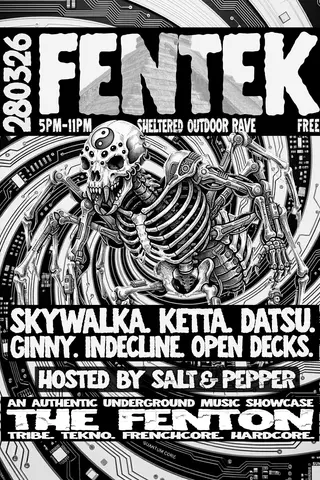 Salt & Pepper presents: FENTEK27 - SKYWALKA, KETTA, DATSU, OPEN DECKS & MORE (FREE OUTDOOR) takes place at The Fenton in Leeds, United Kingdom on March 29, 2026. Techno, Hardcore.