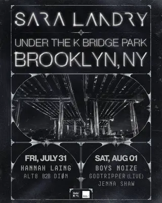 Sara Landry - Saturday on August 1, 2026 at Under the K Bridge, New York features Sara Landry and Boys Noize performing techno DJ sets.